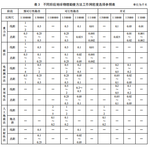 h) 地球物理方法實(shí)物工作量應(yīng)滿足相應(yīng)比例尺(參見表 3)及探測(cè)深度要求;后續(xù)涉及鉆探工作的應(yīng)有異常驗(yàn)證和再解釋的設(shè)計(jì)內(nèi)容。