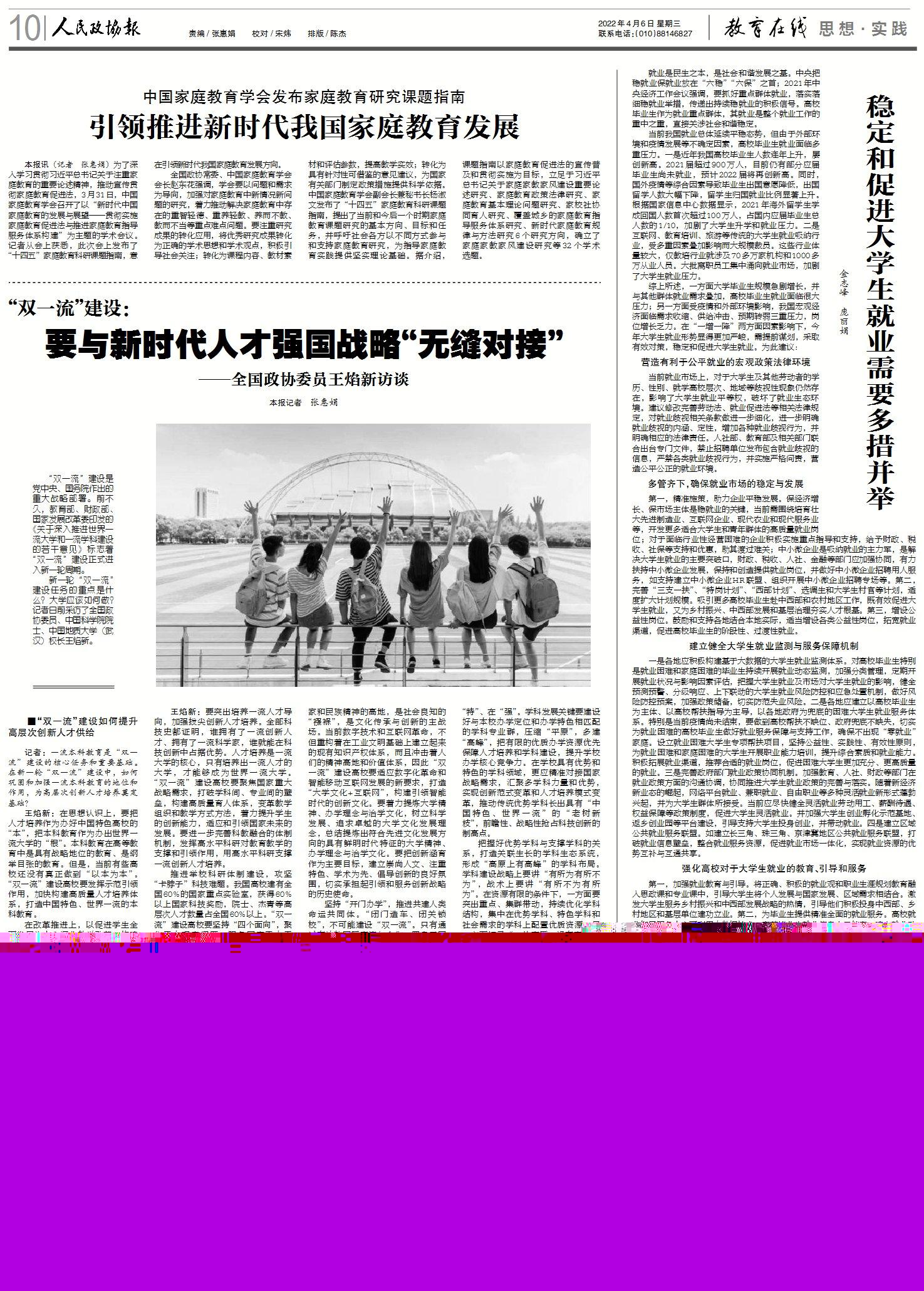 王焰新:在思想認識上,要把人才培養(yǎng)作為辦好中國特色高校的“本”,把本科教育作為辦出世界一流大學的“根”。本科教育在高等教育中是具有戰(zhàn)略地位的教育、是綱舉目張的教育。但是,當前有些高校還沒有真正做到“以本為本”?!半p一流”建設高校要發(fā)揮示范引領作用,加快構建高質(zhì)量人才培養(yǎng)體系,打造中國特色、世界一流的本科教育。