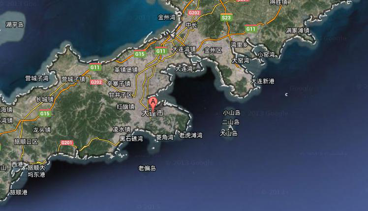大連是京津的門戶,北依營口市,南與山東半島隔海相望,與日本、韓國 、朝鮮 和俄羅斯 遠東地區相鄰,位置在120°58'至123°31',北緯38°43'至40°10'之間。全市總面積12574平方公里,其中老市區面積2415平方公里。區內山地丘陵多,平原低地少,整個地形為北高南低,北寬南窄;地勢由中央軸部向東南和西北兩側的黃、渤海 傾斜,面向黃海一側長而緩。長白山系千山山脈 余脈縱貫本區,絕大部分為山地及久經剝蝕而成的低緩丘陵,平原低地僅零星分布在河流入海處及一些山間谷地;巖溶地形 隨處可見,喀斯特地貌 和海蝕地貌 比較發育。