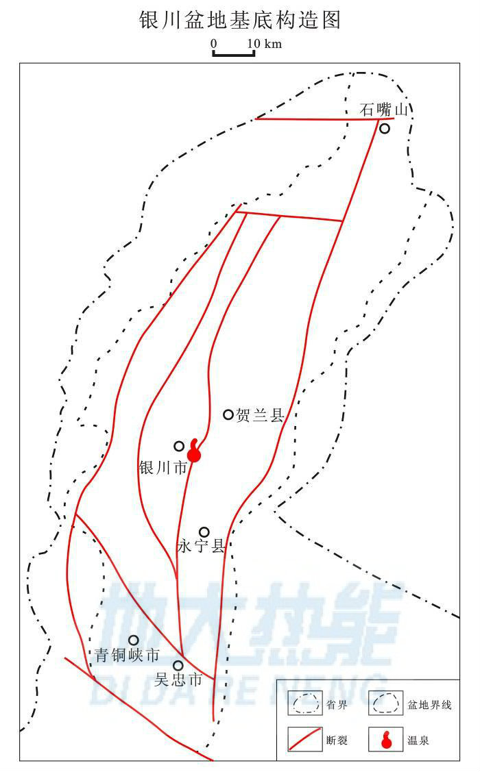 圖3 寧夏銀川御泉灣溫泉區(qū)域基地構(gòu)造圖