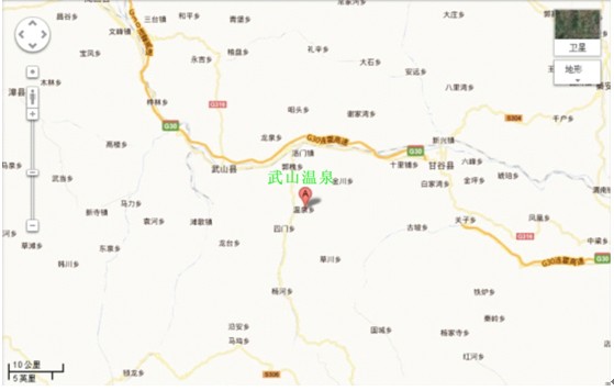 武山溫泉位于隴海鐵路天水車站至蘭州車站之間,武山溫泉療養區東南西三面群山環繞,安靜幽雅,空氣潔凈、無噪音污染,年溫差小,氣候宜人,是療養康復的最佳期。療養康復區的布局依自然地形設計,呈南北長廊式分布,其位置錯落有致,所有建筑古樸、典雅,與療養地自然景致融為一體,給人以濃郁的鄉土氣息。